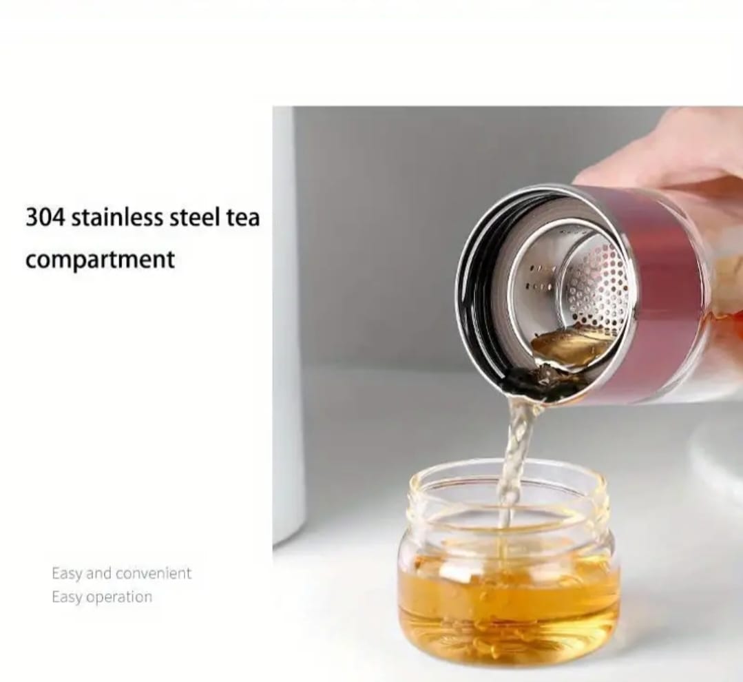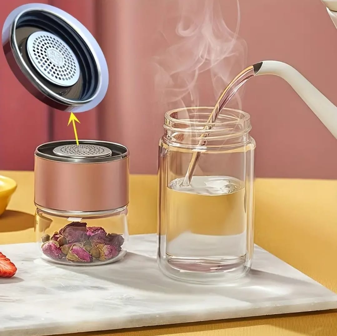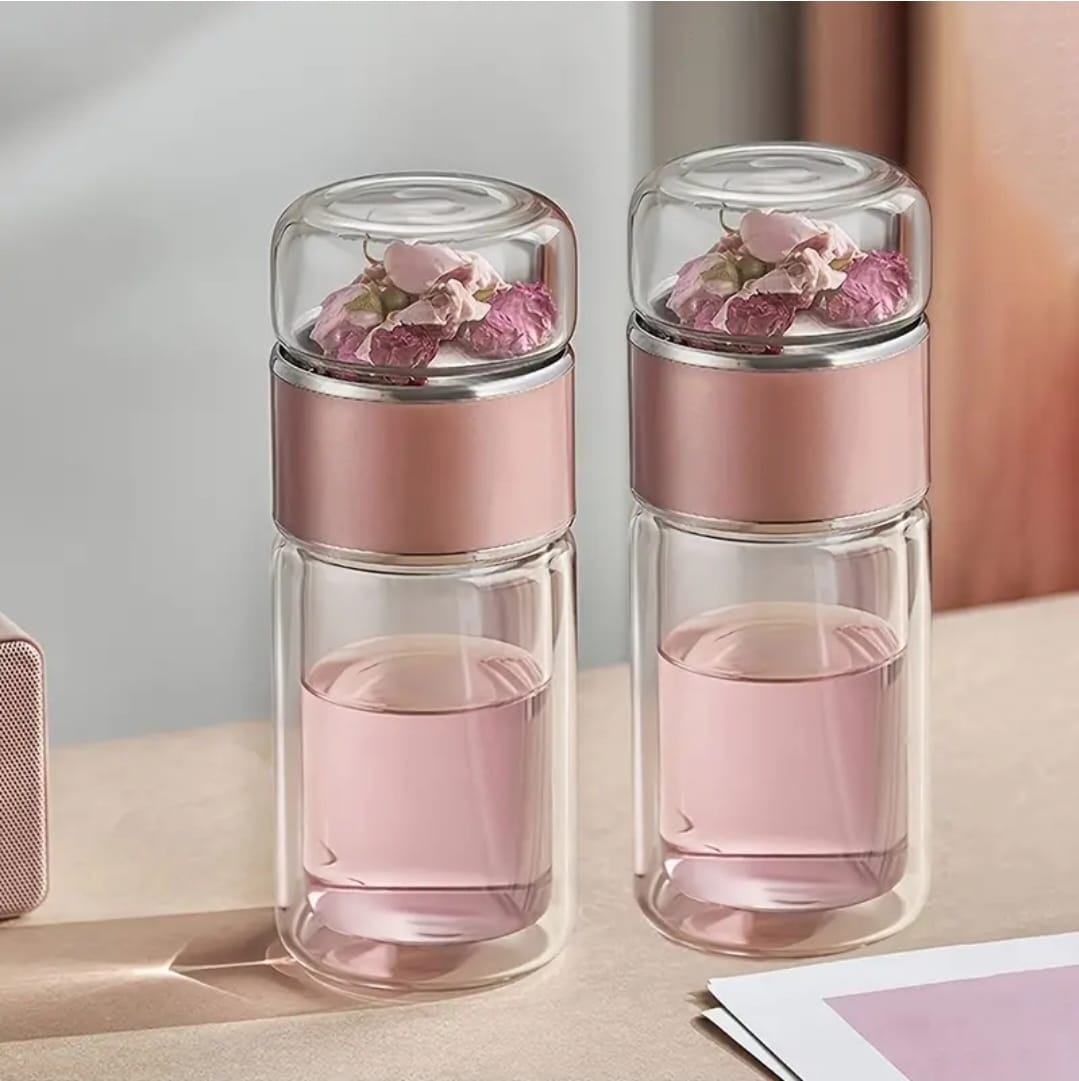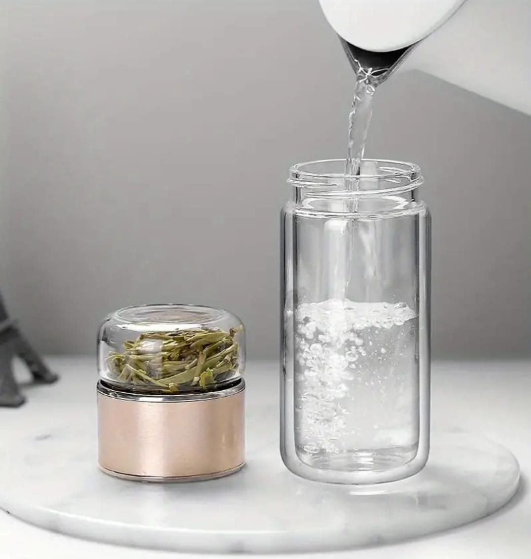 Enjoy your favorite hot or cold beverages anywhere with this sleek, double-walled Infuser Glass Bottle. Made from high-quality borosilicate glass, it’s designed for stylish, on-the-go tea or coffee infusions.