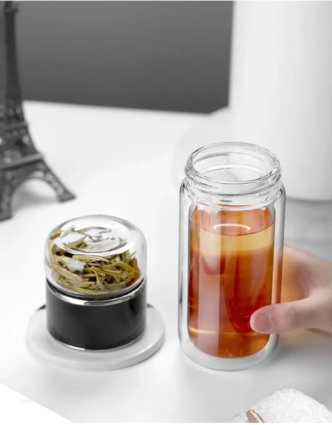 Double-Walled Infuser Glass Bottle – Borosilicate Tea & Coffee Travel Bottle with Filter